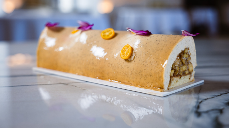 Et pour la bûche de Noël, la recette « Caramel, pomme, kumquat et vanille » a été imaginée par le Chef Clément Réauté, Champion de France du dessert 2025, Chef pâtissier du restaurant de Christophe Hay – Fleur de Loire, et sera reproduite dans nos cuisine par nos Chefs et leur brigade. Vous aussi relevé le défi pour épater vos convives !