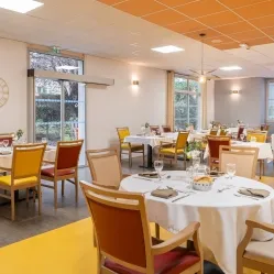 Les résidents bénéficient chaque jour d’une restauration savoureuse avec 5 repas (petit déjeuner, déjeuner, goûter, dîner et collation) servis, selon les souhaits des résidents, en chambre ou dans la salle de restaurant.