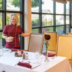 En plus des services de soins, la maison de retraite offre des chambres individuelles modernes et adaptées à la mobilité réduite, un restaurant proposant des menus équilibrés respectant les goûts et régimes des résidents, des activités en lien avec l’extérieur et des services tels qu’une boutique, un salon de coiffure, une blanchisserie, etc.